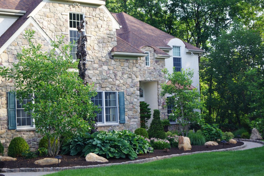 If low maintenance is your goal, using various stone and mulch can be a great technique. By including some landscape lighting, you can really have your landscape standing out at all hours of the day. There are a variety of styles to choose from but this can be very striking and create a very nice aesthetic on your property.