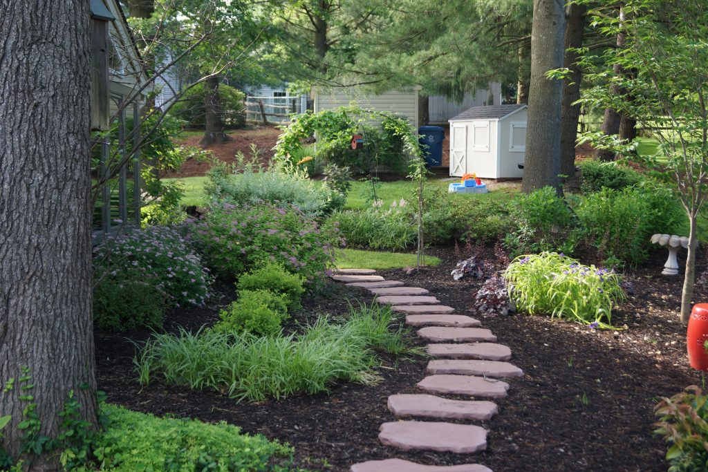 3.) Stone foot path with mulch