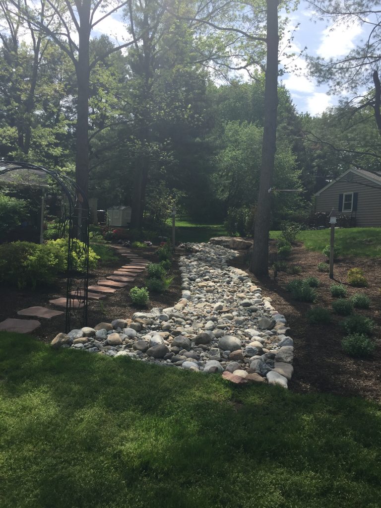 This is for anyone that has a aquascape design or a creek going through your backyard—nothing will help funnel the raging river like a wall of stones! It is almost as if the stone and mulch work together.