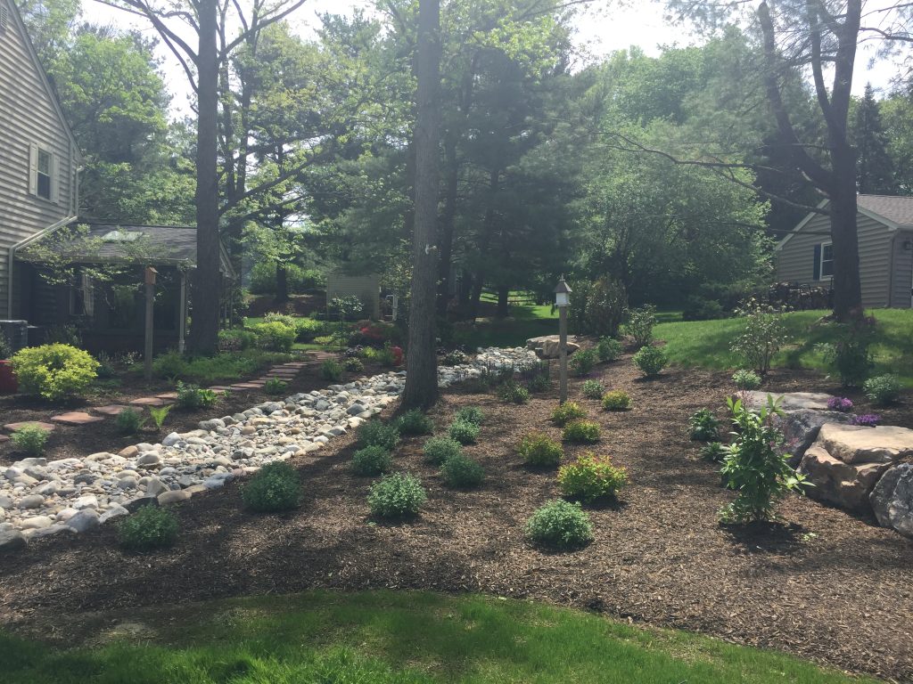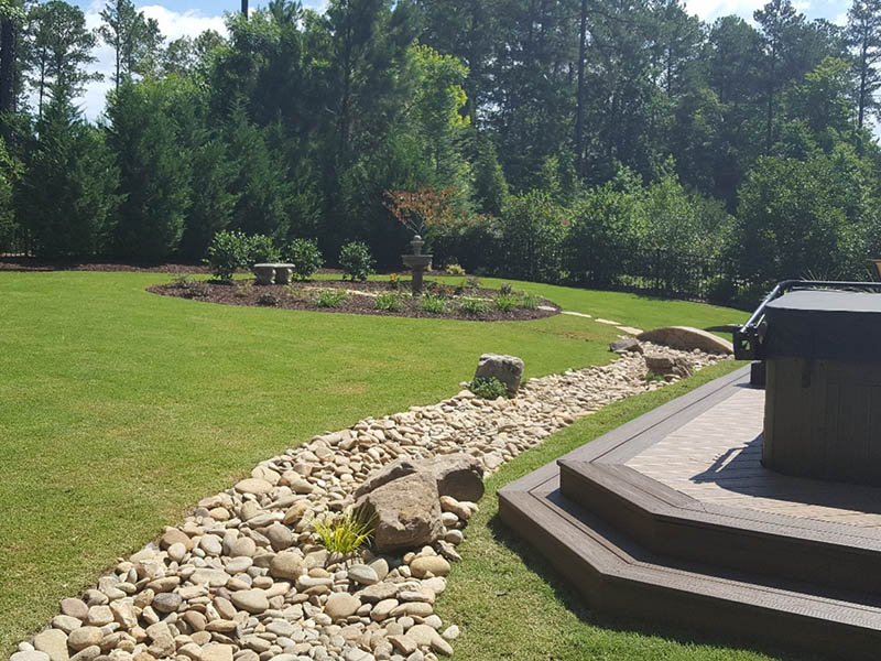 Look at the natural flow of gardens to drainage solutions to the deck. Everything is working together to help your landscape.