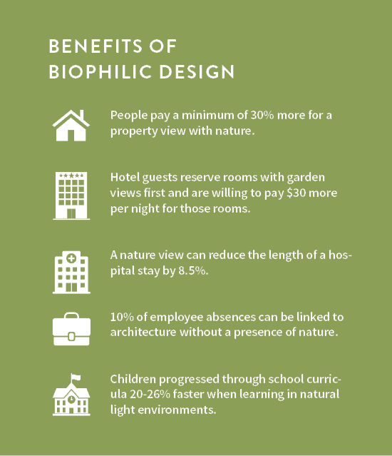 “We believe that incorporating nature into the built environment is not just a luxury, but a sound economic investment in health and productivity, based on well-researched neurological and physiological evidence,” according to the report.