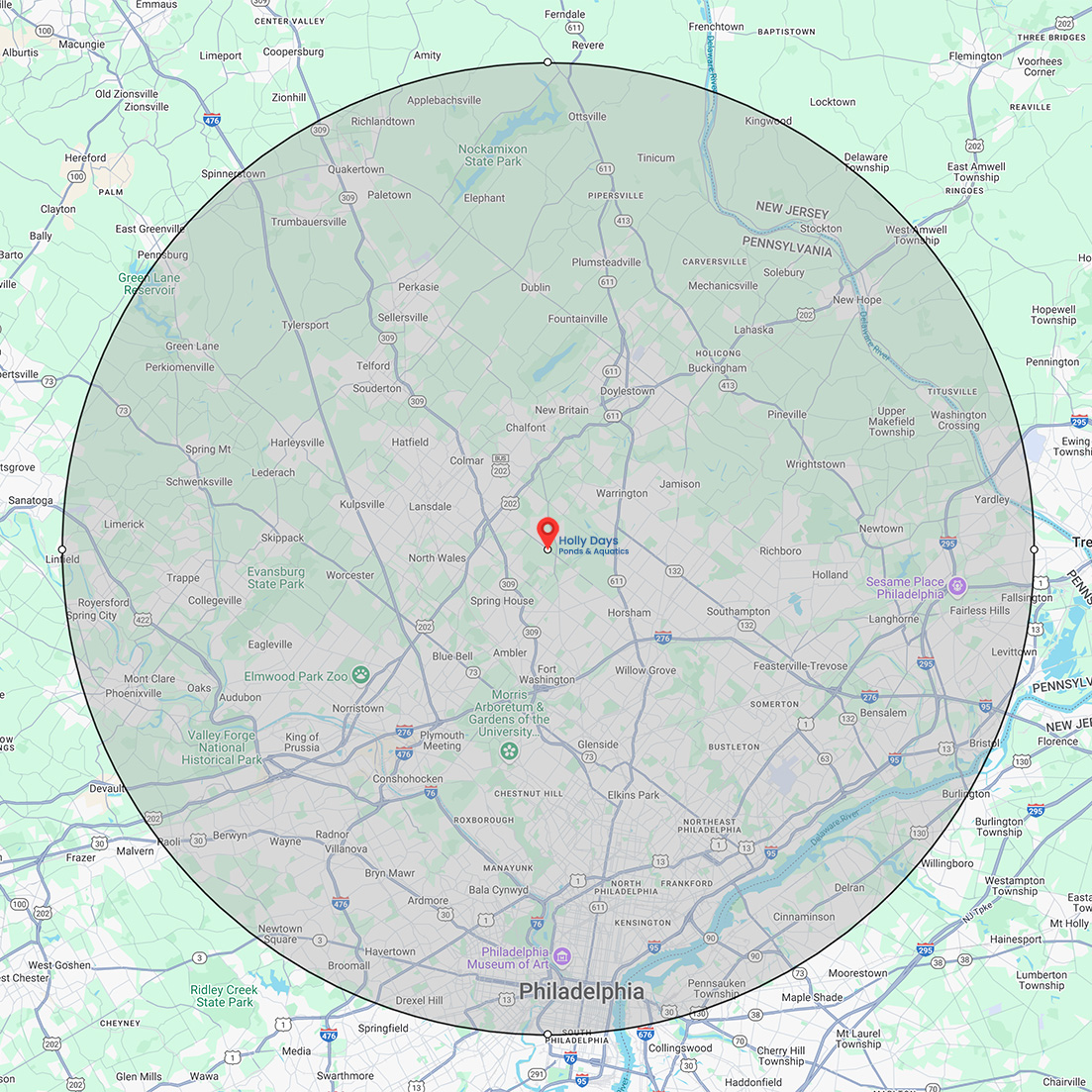 Our team is always happy to talk to you. For any further information or inquiries, please contact Chuck directly at 215•283•3228 ext. 109. At this time our service area is limited to 20 miles from our location at 1201 Horsham Rd., Ambler, PA 19002. For reference, please see the service map below.