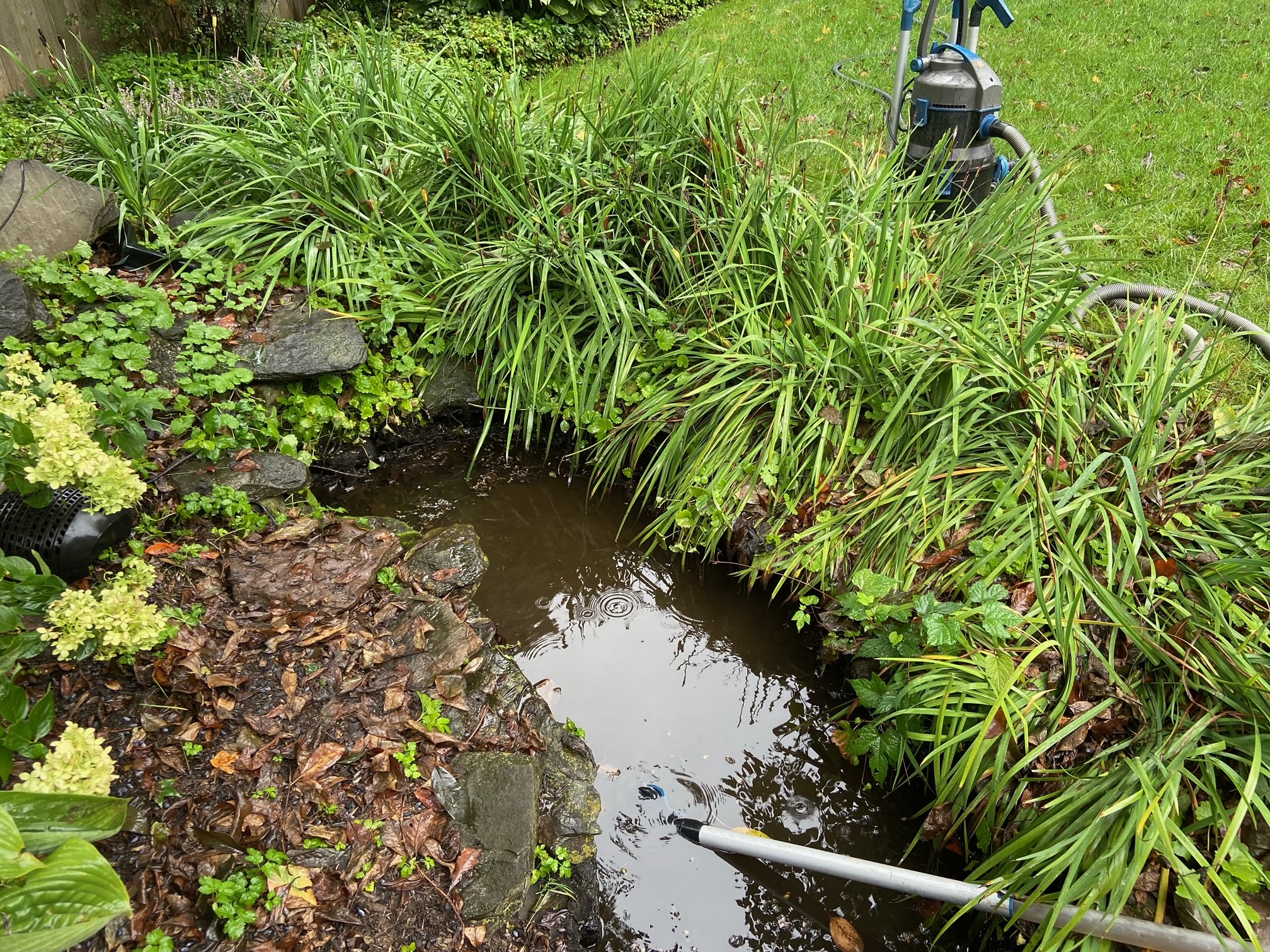 - Vacuum pond bottom, skimmer, and waterfall boxes to remove debris, sludge, and silt