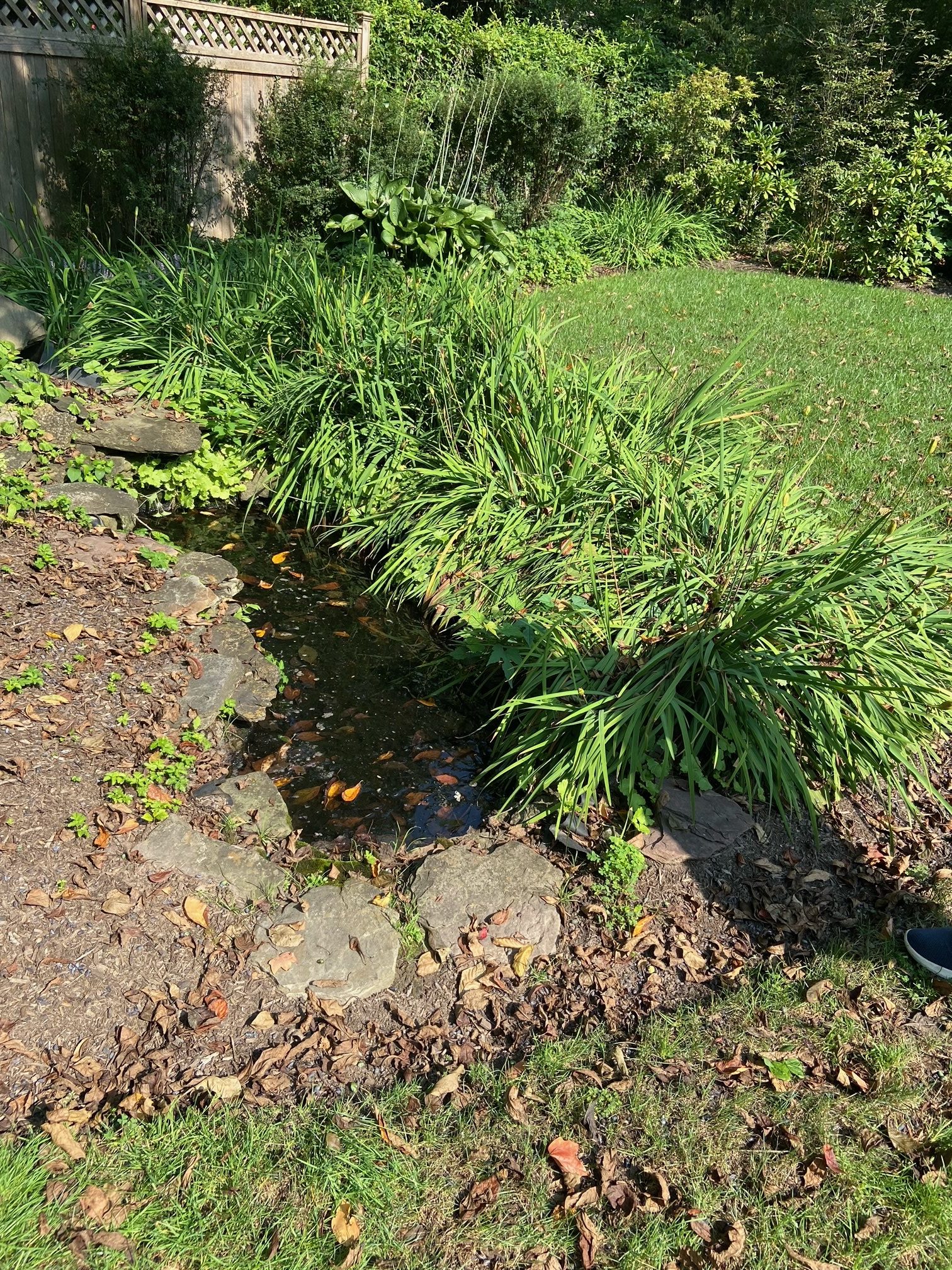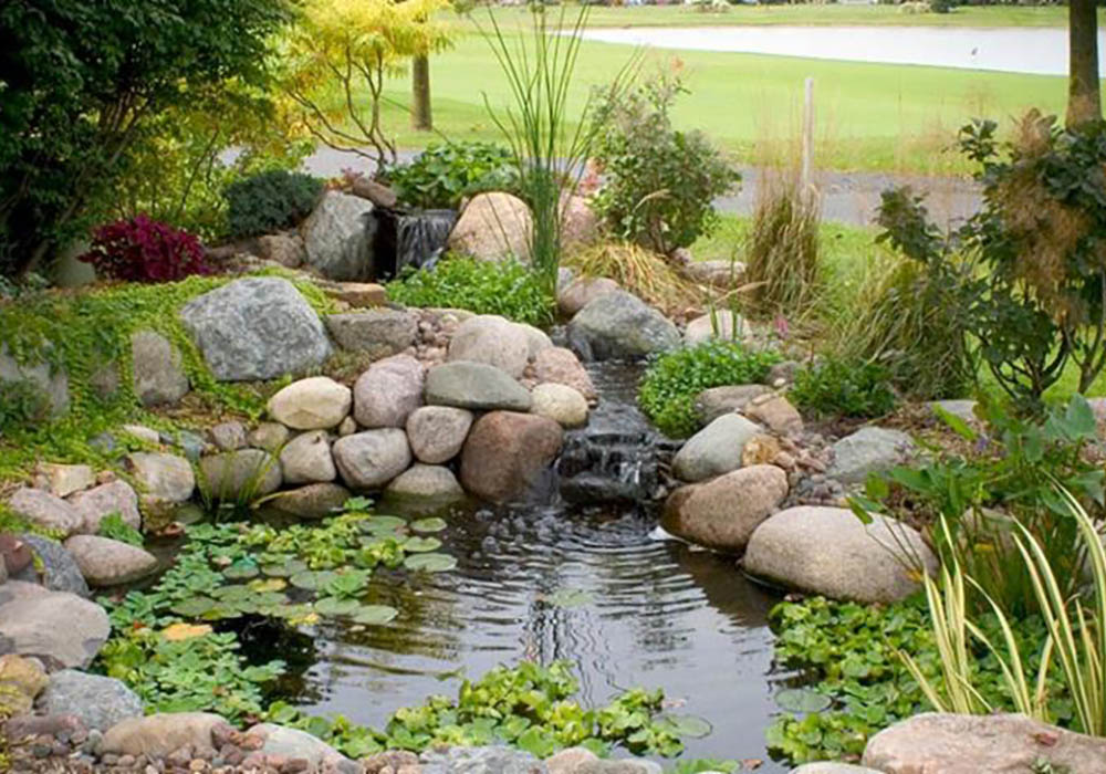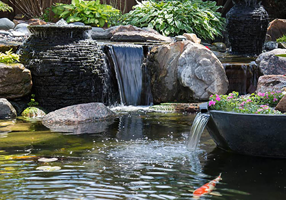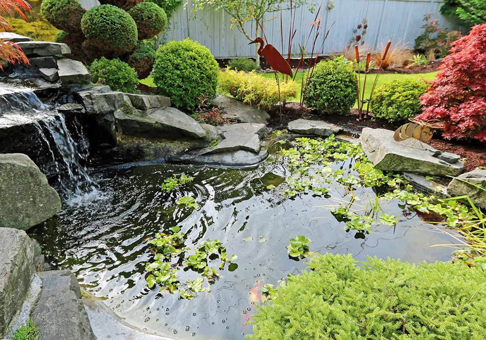 - Remove debris, leaves, and algae from pond streams and waterfalls